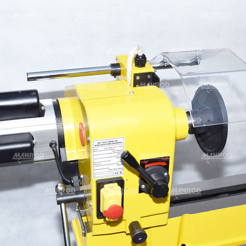Torno para madeira extremamente robusto, fabricado em grande parte em Ferro Fundido o que lhe garante maior robustez, estabilidade, durabilidade e baixo índice de vibrações, seu cabeço pode girar até 180°, que facilita muito a usinagem de peças de diâmetros superiores a 300 mm. Possui velocidade variável através de correia periférica e polia cônica, o que lhe garante um alto torque com baixíssima manutenção. Disponibilizamos uma linha completa de acessórios e peças de reposição.